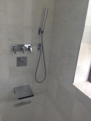 Contemporary minimalist bathroom is a perfect example of the interior perfection to optimize the space and maximize the appearance with a minimum of appliances. Kohler Steam Shower, Heated Towel Holder, Compact Wall Hung Toilet in European Style - this is going to take your breath away with the simplicity and elegance of the design.