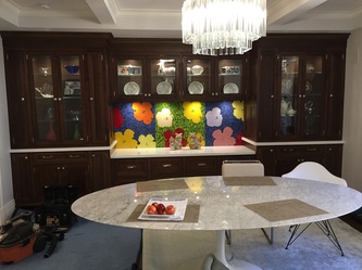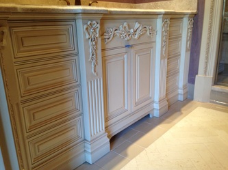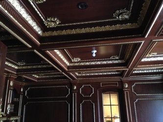 Kitchen Cabinets and Moldings Hand-Painted with Gold.